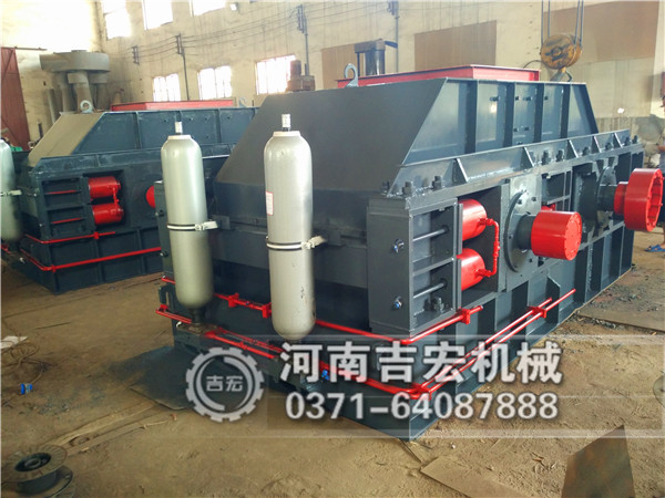 石灰石破碎機(jī)主要由輥輪、輥輪支撐軸承、壓緊和調(diào)節(jié)裝置以及驅(qū)動(dòng)裝置等部分組成。工作時(shí),將破碎物料經(jīng)給料口落入兩輥?zhàn)又g,進(jìn)行擠壓破碎,成品物料自然落下。遇有過(guò)硬或不可破碎物時(shí),其輥?zhàn)涌蓱{液壓缸或彈簧的作用自動(dòng)退讓,使輥?zhàn)娱g隙增大,過(guò)硬或不可破碎物落下,從而保護(hù)機(jī)器不受損壞。相向轉(zhuǎn)動(dòng)的兩輥?zhàn)佑幸欢ǖ拈g隙,改變間隙,即可控制產(chǎn)品排料粒度。