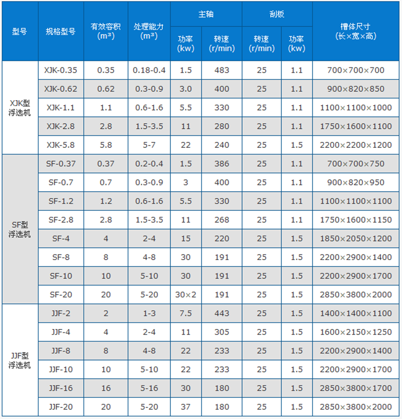 浮選機(jī)的結(jié)構(gòu)裝置:本機(jī)主要由礦漿槽、攪拌裝置、充氣裝置、排出礦化泡裝置、電動(dòng)機(jī)等組成。