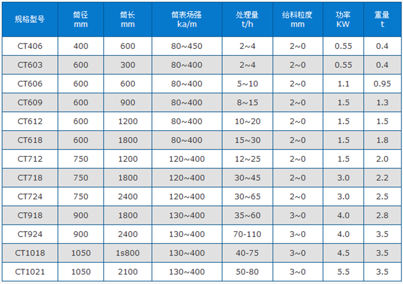 濕式磁選機(jī)技術(shù)參數(shù)